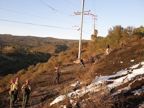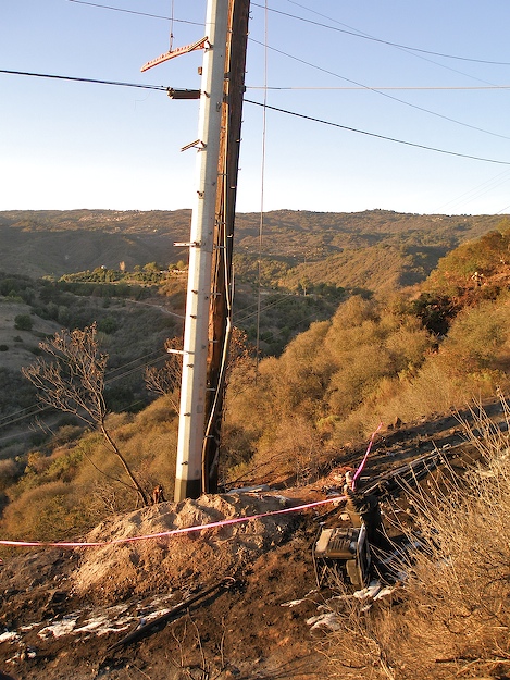 The fire was blamed by nearby residents on work being done to replace aging wooden poles with metal ones. “There are down power lines in the area where the fire started,” County Fire PIO Eli Iskow told news reporters. “However, we haven’t yet confirmed that this was what caused the fire.”