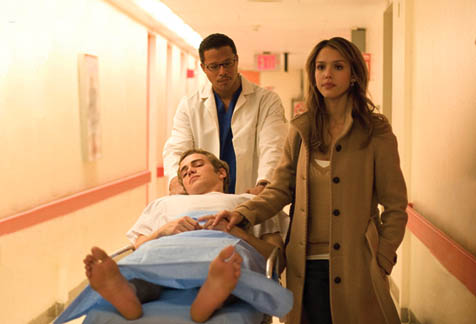 Never one to undermine the efforts of fellow comrades involved in organized workers’ struggles, let’s just say it pangs me to point out that movies like this tend to deflate the currently striking Hollywood writers’ contention that they should henceforth be treated like artistes. Without even knowing-or caring to know-the history of how-or why-this idea-challenged script became a motion picture, I’m going to hazard the reckless guess that it floated like cream above the drab milk usually served to those who green-light big-name pictures. In this case, those big names are Hayden Christensen, Jessica Alba, and the once-fierce Ingmar Bergman protege Lena Olin.