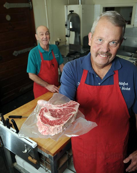 Dave Whitefoot with a ribeye steak and Al Dougherty (background).