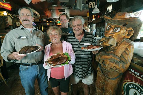 Woody's regulars Craig, Dorothy, "Otto," and Peter (from left) know why their favorite barbeque spot is the best-hefty portions and consistency of menu offerings.
