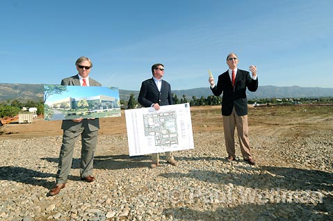 There seems to be nothing quite like a robust construction project to restore faith in the economy. Having spent the last 12 years finagling and finessing a plan that first went before the Santa Barbara County Planning Department, and more recently has been under the jurisdiction of the City of Goleta, the Sares-Regis Group commenced work on the Cabrillo Business Park Thursday morning, October 29, with an official groundbreaking ceremony. About 25 people showed up at the event, including all members of the Goleta City Council, some Planning Commission staff members, and a number of Chamber of Commerce officials.