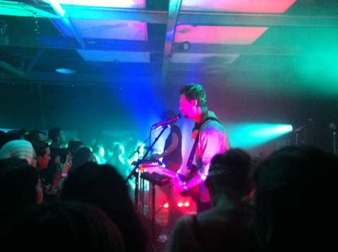Silhouetted above a capacity crowd, the NY-based noisemakers had a quiet air about them during downtime, but seemingly postured songs soon crescendoed into feverish screams, with lead vocalist Sarah Barthel double-gripping the mike for leverage. Even she looked surprised by the intensity evinced by favorites like “Turn it Off,” “As Far as I Can See,” and the newer “Nightlife,” which all combine elements of psyche-rock, trip-hop, and post-rave, not to mention enough lighting to permanently engrave the band’s image on to your corneas. Between drums, guitar, keyboard, and a couple of mikes, their stage set-up looked simple enough, but these audio-illusionists are aptly named, as their performance compacted enough lights and sound to fill a festival stage into the tiny brick-walled room. Of course, not all was lasers and rave-synths, as more down-tempo selections like “You Are the Ocean” and “Running From the Cops” were fit agreeably in between for a swaying, eye closing respite. It’s strange to think that a space that comfortably fits a band of five and a crowd of 200 can look so small under the watch of three people, but when you’re as surgical as Phantogram, and you’ve got a song as appropriately rakish as “When I’m Small” to close out your set, such illusions are commonplace.
