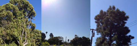 It took a whole lot of money for me to finally escape the gridlock, strained infrastructure, and overpopulation of The Big Orange and move to Santa Barbara. For an assignment, my grade-school daughter asked me what we did to help save the planet; I told her we have solar panels and we live in a small house that saves energy. We appreciate the abundant nature here, and we trim back our trees and bushes so we don’t block our neighbors’ views. I guess you could say we value trees over buildings although I’ve never before called myself a treehugger. If trees could talk though, I’m sure the one across the street would have a few words to say. The neighbors couldn’t agree on shade or sun, so the huge treetop was vertically sliced down the center to keep both sides happy.
