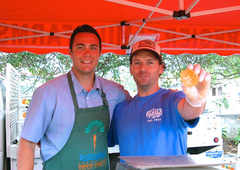 Their story: Growing over 40 acres of peaches and mandarins, the Regier family has been frequenting farmers markets with their sweet selection of tree-ripened fruit, picked to ensure ripeness and sweetness since 1983. In addition to this, they will only pick fruit when it has reached full size and maturity, ensuring the freshest quality. With no late freezes, the Dinuba region offers the perfect growing climate for peaches, yet is cold enough in the winter to allow the citrus to be sweeter. Troy Regier took over the family business from his dad, after growing up on the small farm and selling at farmers markets as a teenager. A former race car driver and record holder, Troy has enjoyed getting back to his farming roots and working on the family farm.