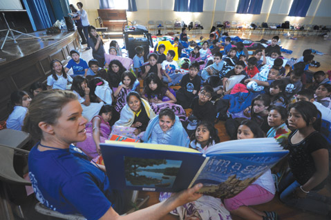 <b>READ TO ME:</b> Students at McKinley gather around their teacher for story time. Many of the kids’ parents grew up in Mexico and have limited formal education themselves, so the school adopted a program called Padres Adelantes, which explains the American educational system to parents.