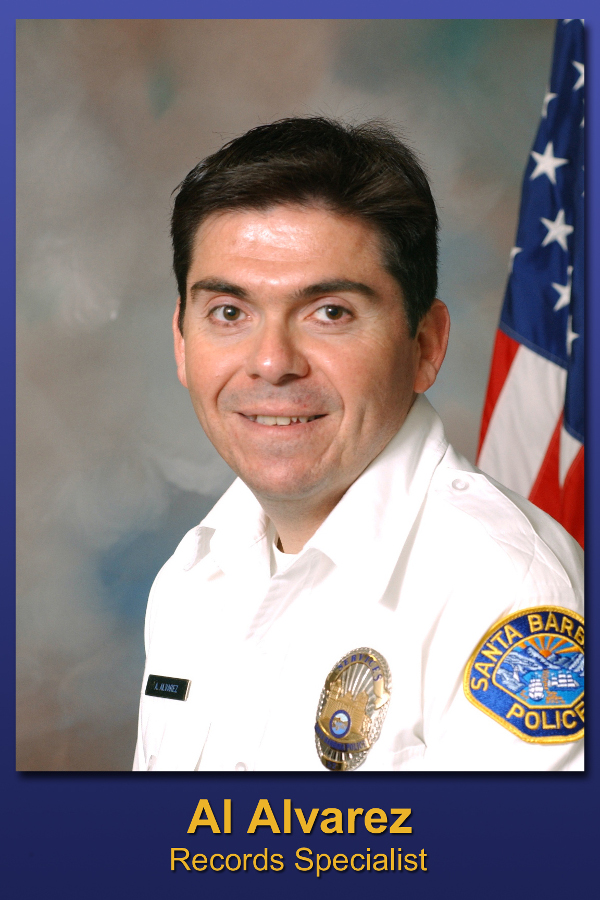 Alfred “Al” Alvarez began his career with the Santa Barbara Police Department on August 6, 1988, and retired September 5, 2014. During this time, he assisted countless citizens and Police Department personnel through the Records Bureau.