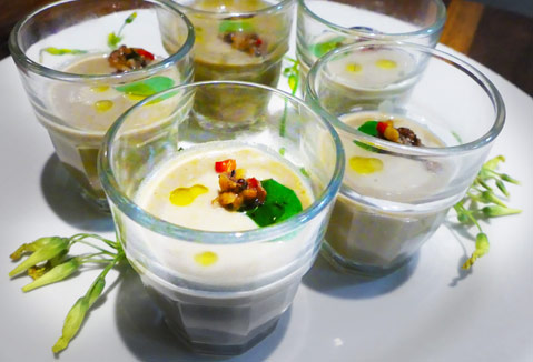 Usually there’s no risk to bisque: It’s supposed to comfort you in its creamy arms. Of course Barbareño is all about the clever curve, the elegant update, as now embodied in this gorgeous mushroom bisque.