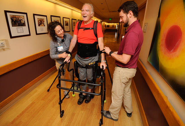 “It really is quite unique because you can help people that have the potential to walk but really aren’t walking very well or not walking at all,” said Dr. Noah Gaines, who works in physical therapy and neurology at the hospital, which is the only facility between Los Angeles and the Bay Area with the Ekso.