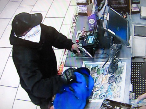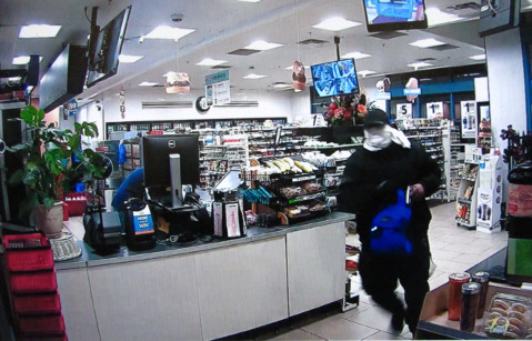 Santa Barbara Police are searching for a man who used a handgun in a robbery of the 7-Eleven at State and Mission streets early Wednesday morning. The man — who hid his face with a white cloth and was clad all in black, including a black baseball cap — was caught on surveillance cameras at 1:25 a.m. as he made a clerk place approximately $100 in a blue backpack. He is described as heavily built, about 5’7″, and has a dark complexion. Police ask that if citizens recognize the person in the photographs, to call Detective Douglas Klug at (805) 897-2346 or email dklug@sbpd.com. Anonymous tips can be called in to (805) 897-2386.