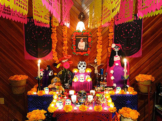 Ofrendas: These are the altars composed of offerings that are erected during the Día de los Muertos season to celebrate the lives of loved ones who have passed on. In addition to marigolds, pan de muerto, sugar skulls, tissue paper designs, a glass of water, and copal incense, they typically include a late relative’s photograph, favorite foods, drinks (including liquor), and beloved personal items. Modern ofrendas have become much more artistic and whimsical.