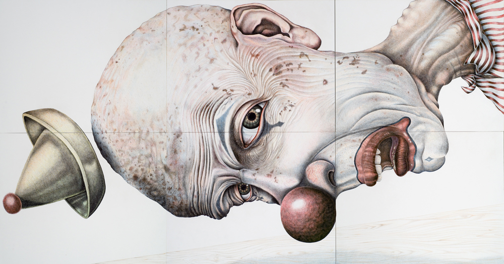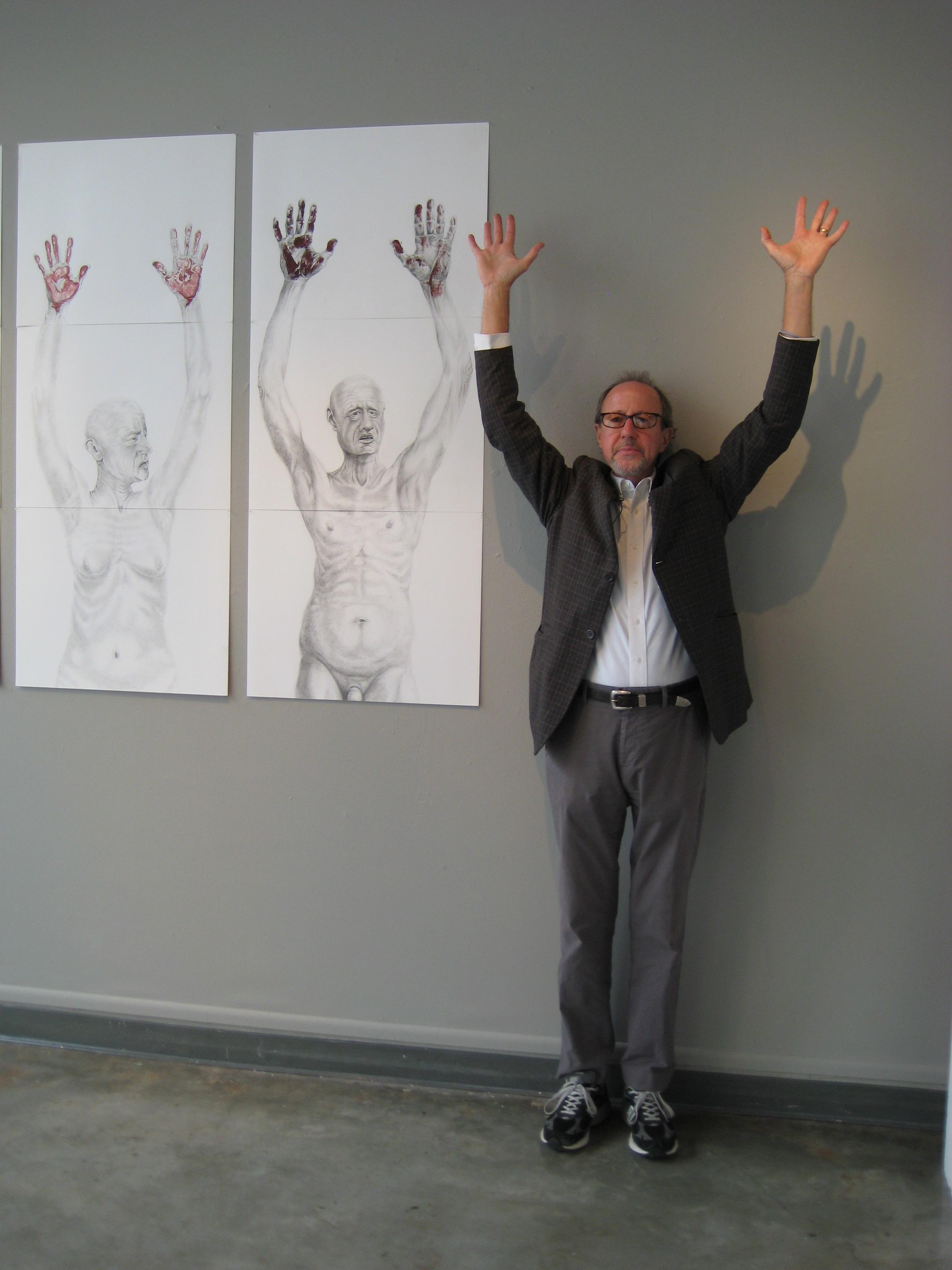 There was humor, sometimes corny or raucous, more often biting and self-directed. He used this humor to draw people in, frequently to set up the punchline for a more serious point he wanted to make. His work could be uncomfortable to view, e.g., an 11-foot-long drawing of a dead clown (himself) laid on a simple bed; a 10-foot-tall portrait of himself on a hospital bed hooked up with IV lines. He was unflinchingly honest in his depictions of the raw, tragic aspects of life. No matter what the image or how he had made it, there was an inherent truth to it. It appealed to a diverse audience, from a critical art world to people not involved in art.