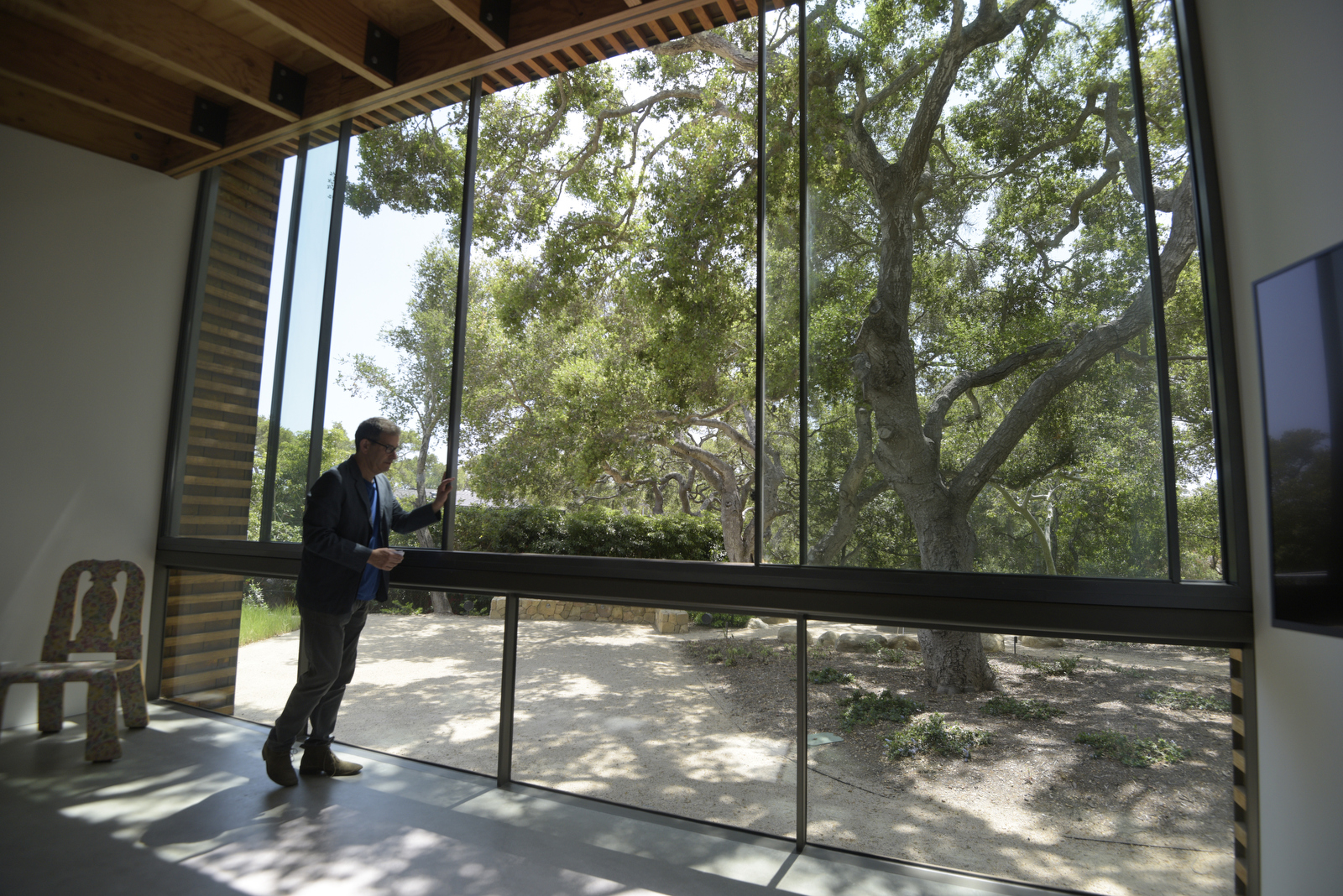 Santa Barbara Museum of Art curator Julie Joyce, an old friend of the Partridges, joined us on the afternoon that Cathie showed the house, and she spoke warmly of the one occasion in fall 2017 when the barely finished house was the site of a wedding celebration ​— ​architect Peter Tolkin’s marriage to artist Yunhee Min. Cathie then recalled the magic moment immediately after the vows when the sun was setting and the outdoor garden lights came on automatically, trading one golden hour for another. “It was magical,” she said.