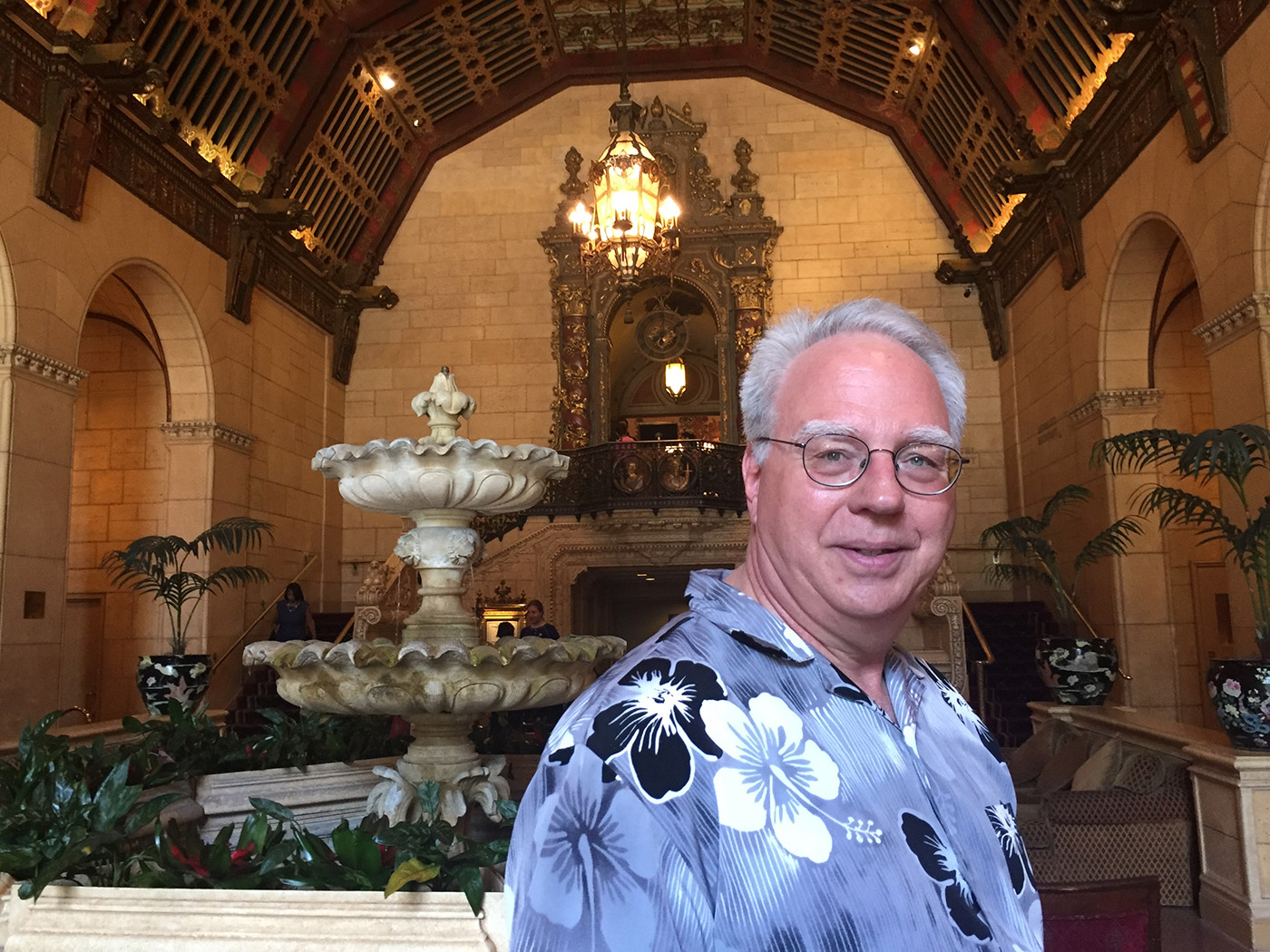 Journalist Larry Harnisch is seen here in the ornate lobby of Los Angeles’ Biltmore Hotel, where Short was last seen alive.