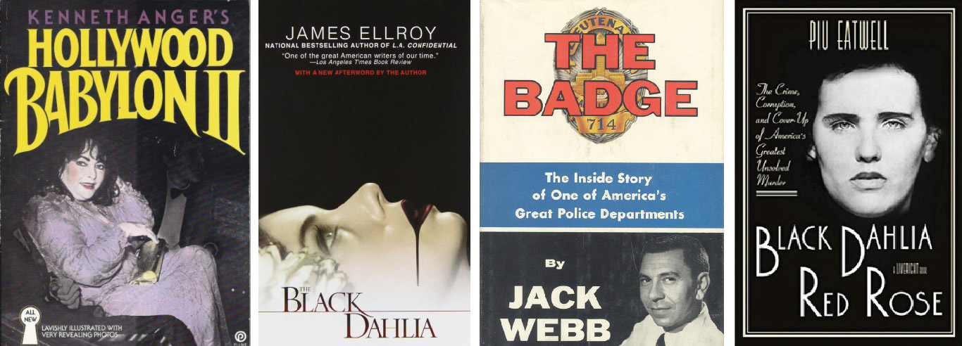 At the other end you will find writers fascinated with the murder. Many readers are familiar with the case through acclaimed author James Ellroy’s 1987 novel The Black Dahlia, which presents a fictional account (and became a 2006 Brian De Palma film that flopped). Ellroy, whose mother was murdered when he was 10, has told interviewers he became fixated with the case after reading about it in Jack Webb’s The Badge when he was 11, effectively fusing the two murdered women in his mind. In 1979 John Gregory Dunne included a fictional account of the Dahlia murder as an element in his novel True Confessions. The book was later made into a popular film written by Dunne and Joan Didion, his wife, and starring Robert De Niro and Robert Duvall. With the publication of avant-garde film director Kenneth Anger’s book Hollywood Babylon II in 1984, interest in the murder spread, as it included a graphic crime-scene photo of Elizabeth Short’s body splashed over two pages, bringing gory details of the horror to a large audience for the first time.