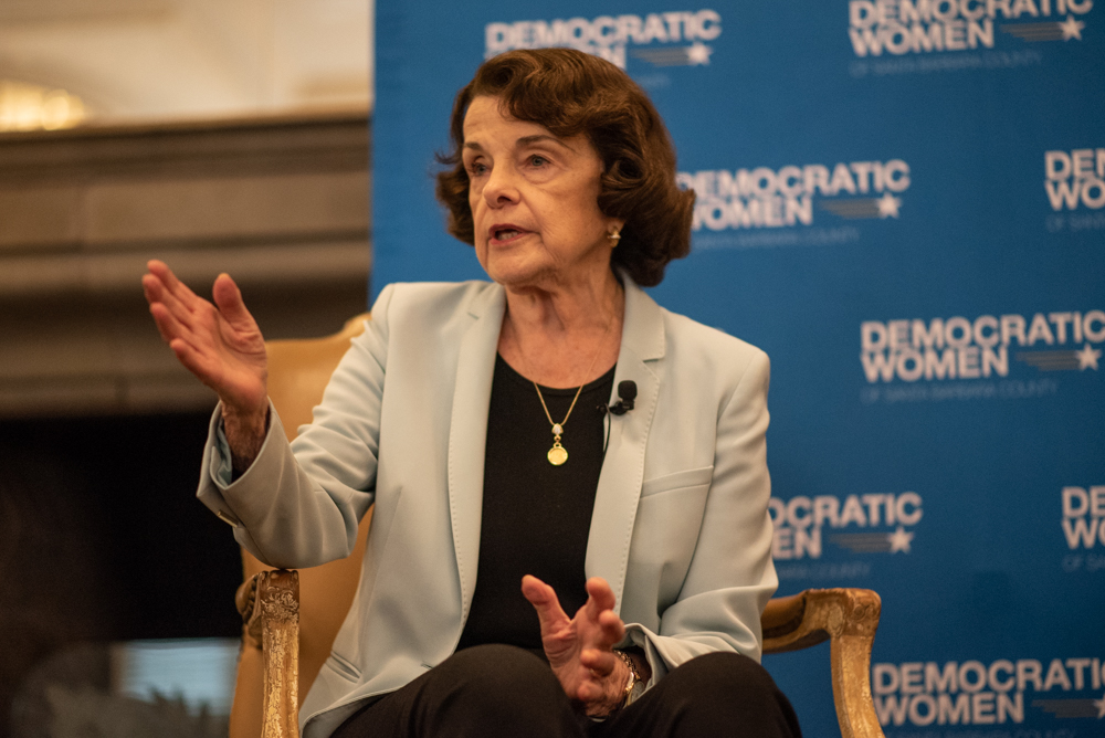Feinstein’s remarks in the Loggia Room of the Biltmore came in a question-and-answer session with Representative Salud Carbajal, whose role was to serve one softball after another, e.g. “What has been your greatest accomplishment in the Senate?”