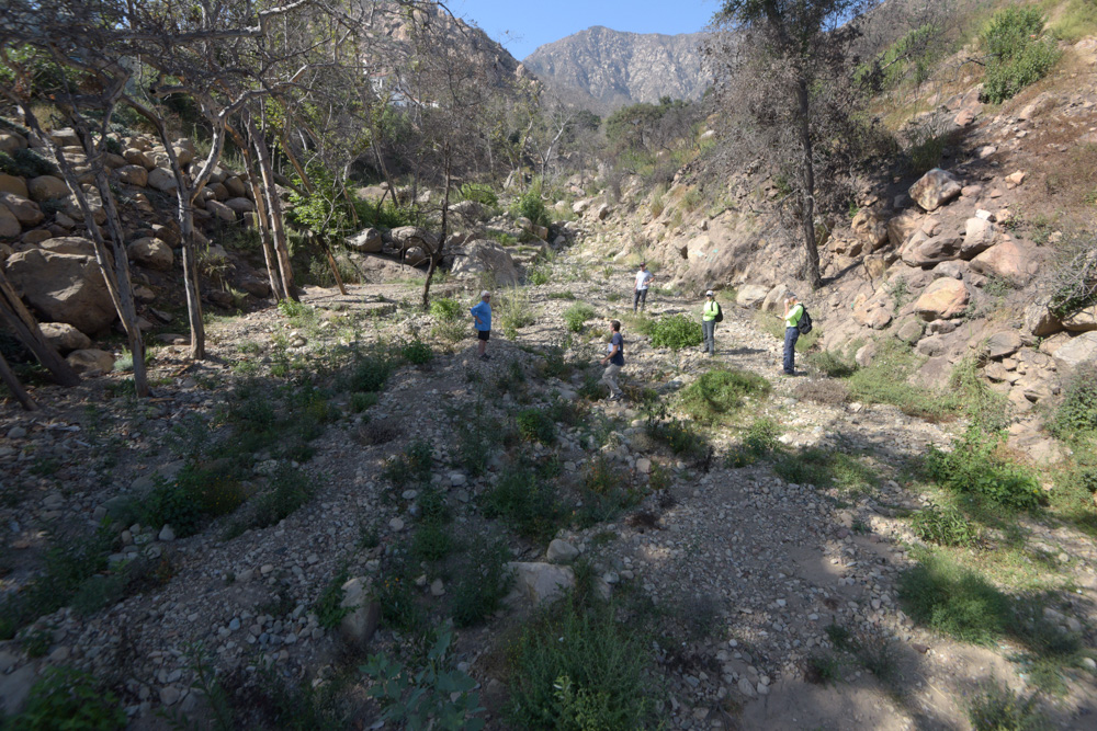 While proponents aim to have the nets ready for action this winter, significant hurdles remain. A bevy of permits, from Santa Barbara County to the Department of Fish & Wildlife to the U.S. Army Corps of Engineers, need to be secured, in part because Montecito’s wild creeks are home to ​— ​or at least suitable habitat for ​— ​federally listed endangered steelhead trout and California red-legged frogs. On Tuesday in Romero Canyon, biologists John Storrer and Jessica Peak, hired by the partnership, completed their “initial field reconnaissance” of wildlife habitat throughout the five canyons, Storrer said, adding, “The biggest issue is that if the nets fill up they could create obstructions that prohibit fish from traveling upstream.”