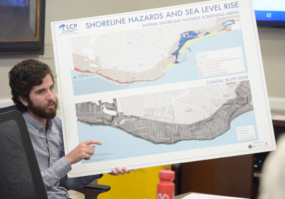 “Initially there will be millions of ideas for us,” warned Melissa Hetrick, a city planner. “That’s just the way it is.” Hetrick noted the new predictive models — put out by the United States Geological Survey — offer a range of outcomes based on probability, not just absolute worst-case scenarios as in years past. At most obvious risk is the stretch of waterfront along Cabrillo Boulevard, as well as the bluffs along the Mesa and Hope Ranch. City planning policies dating back to the 1960s discourage seawalls and other forms of coastal armor unless absolutely necessary. For private property owners living on sea bluffs, allowable building footprints could be seriously shrunk in anticipation of accelerated erosion rates. The majority of the area of concern — 70 percent — however, is publicly owned.
