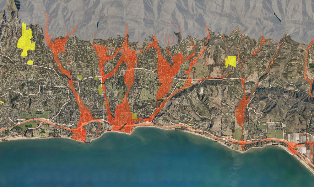 Since recent wildfires and the 1/9 Debris Flow, Santa Barbara County has developed an evacuation map that pinpoints properties in “red zones” at risk for flooding and debris flows. This interactive map — called Debris Flow Risk Areas — is online at readysbc.org/maps/, where you can search street addresses and zoom in along creeks and low-lying areas to see if a specific property has been deemed at-risk.