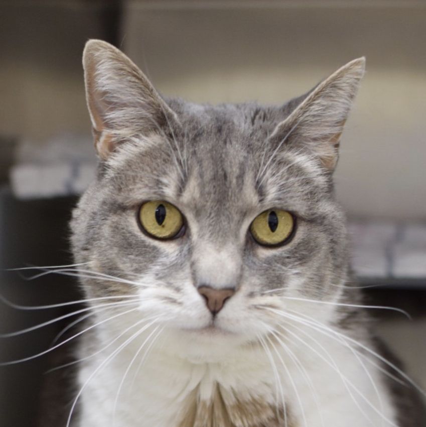 Esperanza is a 4-year-old gray and white tabby cat. She was overweight and a little cranky when she came to us, now she is a shelter favorite who can often be found hanging out with our vet staff. With her weight loss she has more energy and a healthier attitude, too. She would prefer an experienced cat owner and is ok with cats and dogs though she prefers being the diva of the house.