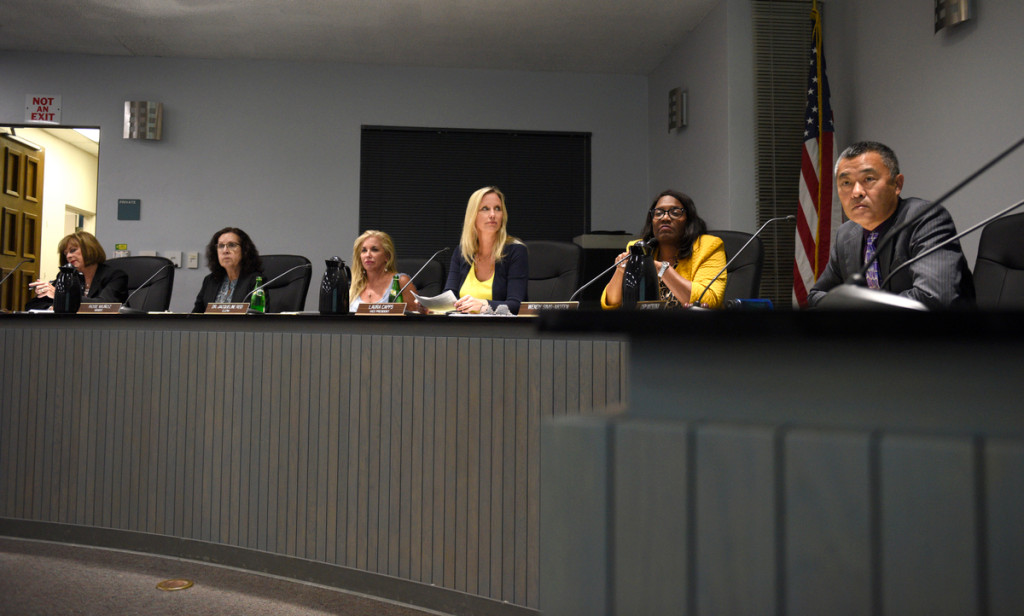 President Wendy Sims-Moten, who terms out December 2020, left her chair next to Superintendent Cary Matsuoka after Laura Capps was unanimously elected by the board to take Sims-Moten’s spot as president.