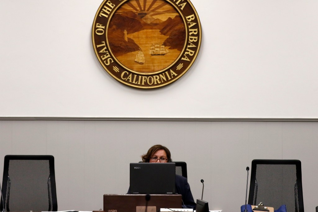 In sharp contrast, the Board of Supervisors meeting — held the same day but a few blocks away — was positively a mob scene. Three of the five supervisors spread out on the dais in the Santa Barbara supervisors’ chambers on the fourth floor of the downtown County Administration Building, and the remaining two beamed themselves in remotely from the county’s Santa Maria meeting room. Supervisor Das Williams distinguished himself by wearing a face covering during the meeting, though mostly around his neck. (He also brought his oldest daughter along, though her patience with board deliberations soon wore thin, and she quickly absented herself from command and control.)