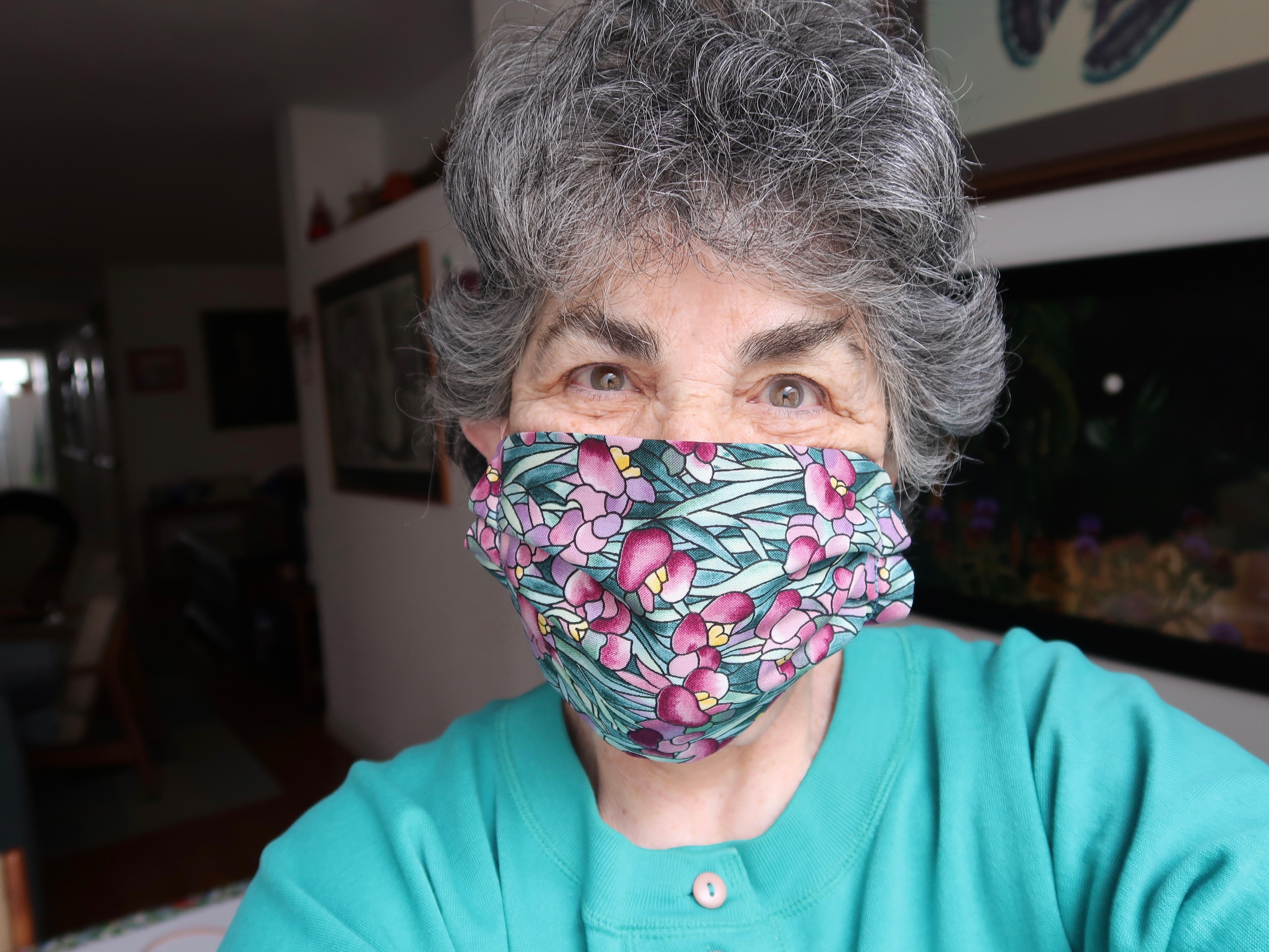 “I feel so happy that I can do something to help,” Marian Shapiro said, a feeling she shares with dozens of women busy at their sewing machines all over the county who are making critically needed face masks. Shapiro’s creations, 170 so far, have three layers of 100 percent woven cotton and one layer of knit. “The knit is different and a bit of a filter,” said Shapiro, who’s also added a twist tie at the nose and a pocket for a coffee filter, paper towel, or tissue for additional filtration against the SARS-CoV-2 coronavirus ravaging the world.