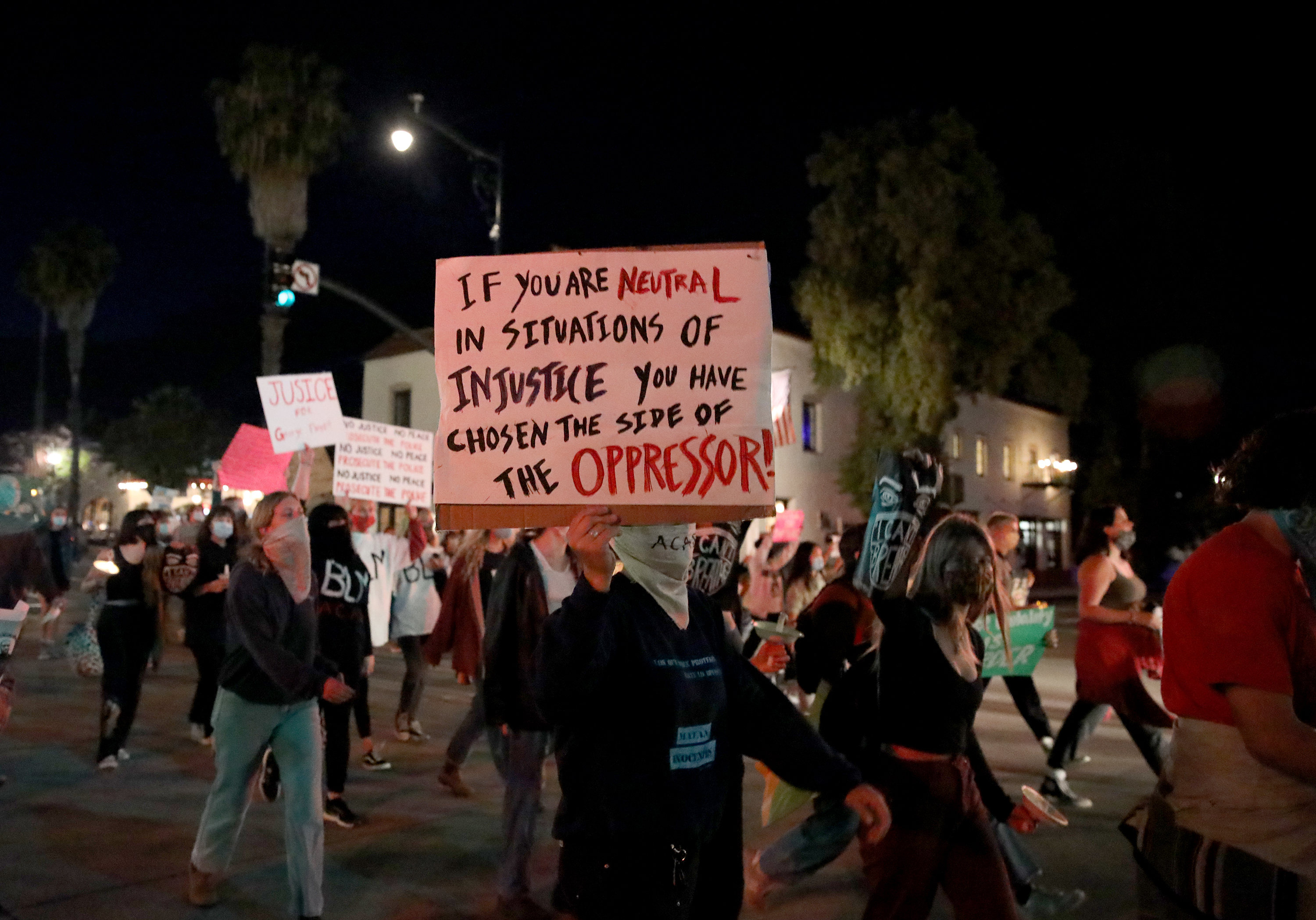 It’s worth noting that Santa Barbara’s Chief of Police Lori Luhnow issued a statement saying she was “deeply disturbed by Mr. Floyd’s death,” adding that it was “preventable and should not have happened.” Law enforcement, she added, has contributed to the “marginalization of many disadvantaged groups, including African Americans.” Law enforcement officers, she added, are responsible for making sure that does not happen. Cops, Luhnow said, have a “duty to intervene” when other cops act “outside the law.” It was, she said, “our policy and our moral obligation.”
