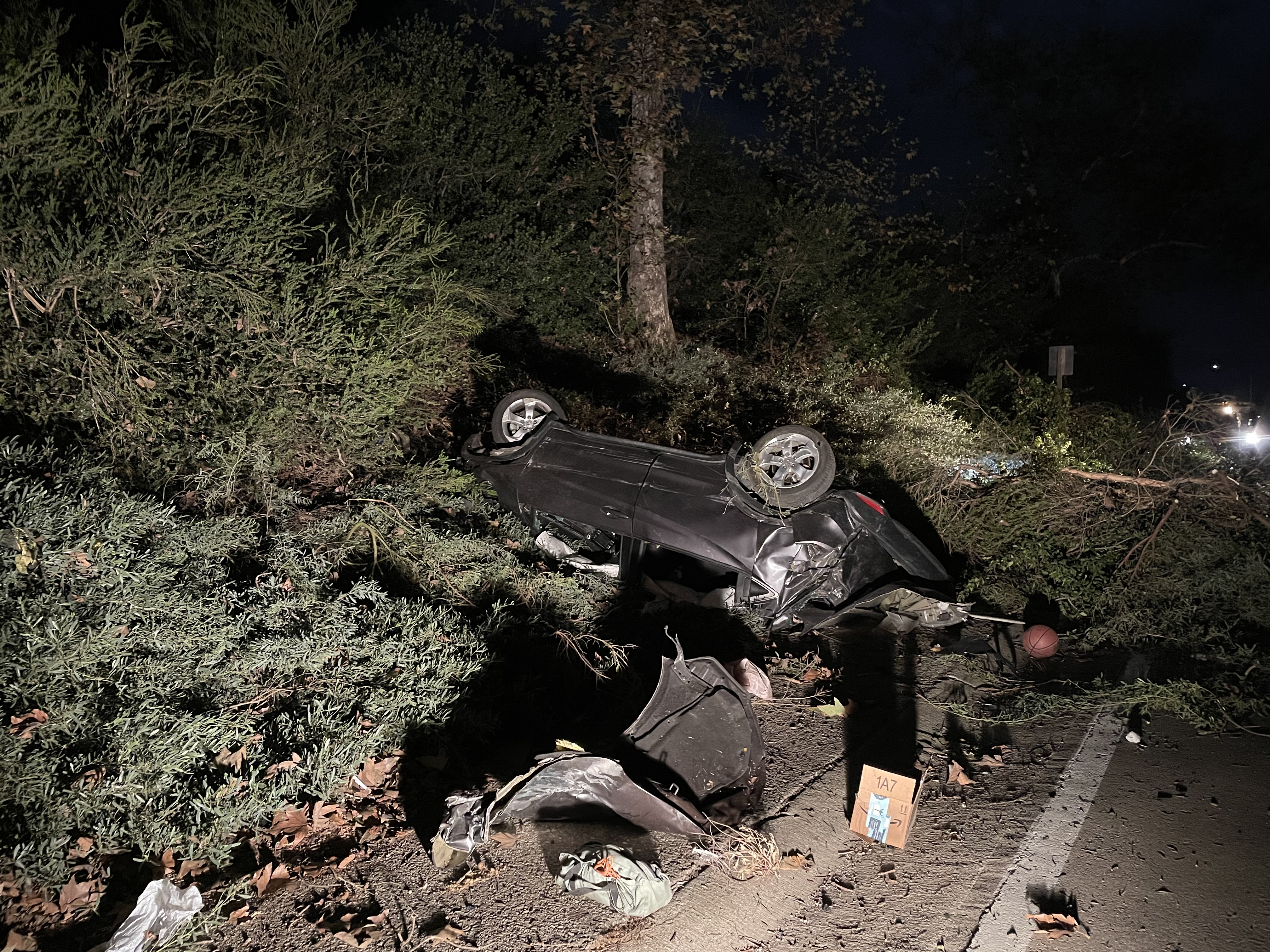 “The impact caused the vehicle to roll several times up the embankment along the Highway 101 southbound offramp where it eventually came to rest,” said police spokesperson Anthony Wagner in a statement. “The driver of the vehicle was ejected and later found deceased.” Wagner said the identity of the driver is being withheld pending a family notification.