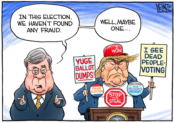 If we’re honest, Donald Trump continuing to say he won the election (which he patently did not) is seditious behavior by a sitting U.S. president. (Sedition includes subversion of a constitution and incitement toward, or rebellion against, established authority.) In our constitutional democracy, “established authority“ includes 270 votes in the Electoral College to ascend to the presidency. Biden got 306 votes. Trump got 232 votes.