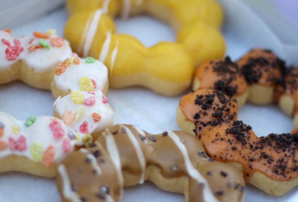 While ring-shaped, they’re not mere circles, instead adhering to the increasingly popular bubble mold, also becoming common in bubble waffles. The playful shape and vibrant colors make the doughnut-eating experience pop even before you sink your teeth in for the first, chewy bite.