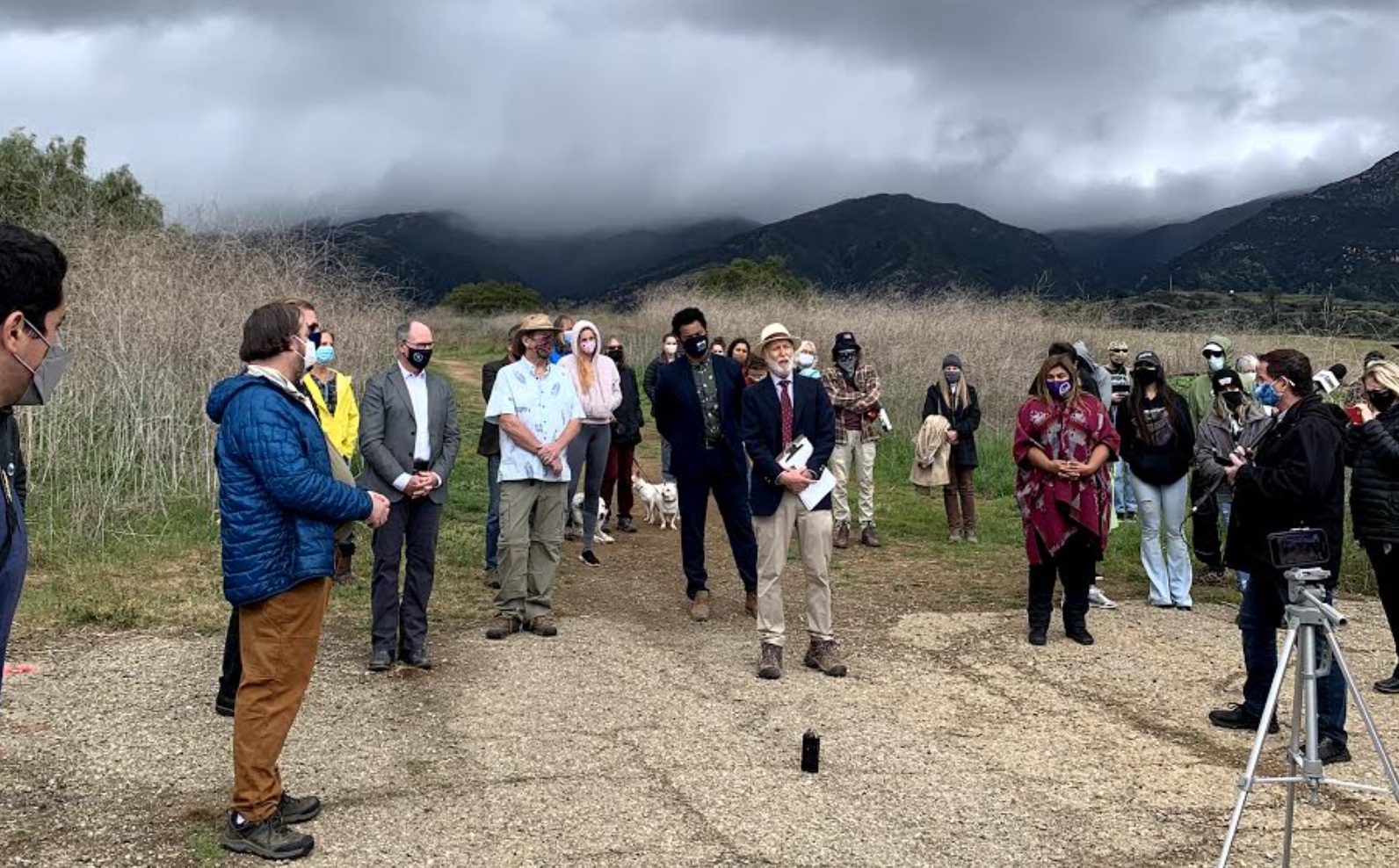 Among the last native grasslands in the county, the foothills were breathtaking under storm clouds as community leaders and residents spoke on Wednesday to announce the terms. Keeping a distance from the rest of the attendees were members of the Chumash community, some of whom protested on February 25 as bulldozers moved toward the gate to the West Mesa. Opting to stay on public land, they said that they have not been invited to participate in preservation efforts and discussions, despite the foothills group’s promises.