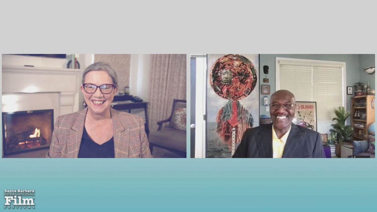In the impressive roster of acting talent paid tribute to by the current SBIFF model — Bill Murray, Carey Mulligan, Sacha Baron Cohen, Amanda Seyfried (showing up, Zoom-side on Friday night), and others — Delroy Lindo’s was distinctive on several fronts. Yes, he was the one black star of the single-tribute list this year, but he was also the only one not kissed by an Oscar nomination, although many have balked at the Academy’s snub, given his stunning performance in Spike Lee’s Da 5 Bloods, about Vietnam Vets returning to the scene of battle for a cathartic encounter.