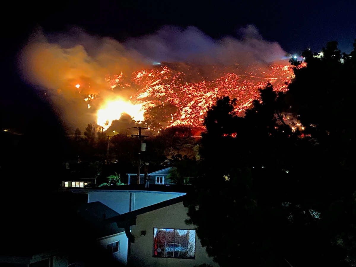 The firefighter response was quick and massive, and by 9:50 p.m., the situation appeared less dangerous. But evacuations were still being pursued along Loma Alta and Miramonte. The estimated size was around 20 acres on the wooded hill.