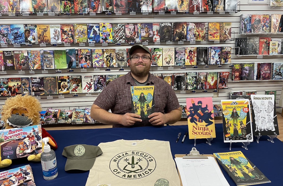 While Ninja Scouts, written by Doyle and illustrated by Martin Plško, is Doyle’s fourth comic release, it marks his first time releasing with a publisher — Scout Comics, under their new all-ages imprint SCOOT, which released Ninja Scouts with multiple cover variations, including a coloring-book version that I plan on filling in with my nephew.