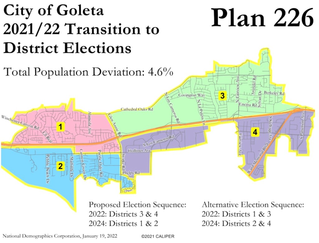 As Goleta divides into four voting districts, it is also splitting the sitting councilmembers into those with a district and those without. Two members of the council — Kyle Richards and James Kyriaco — both live in Old Town, which is likely to be in a district occupying the city’s southeast quadrant.