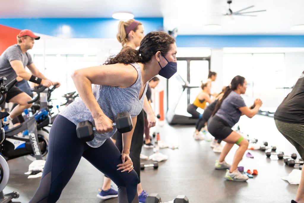 The instructors circulated during class, correcting form, bumping fists, and suggesting modifications for those like me who avoid jumping or who have injuries or other limitations. Although we were encouraged to sprint at times when on the bikes or treadmill, no one got shamed for choosing a more moderate pace. I was impressed when Kate, a three-year member who was 29 weeks pregnant, handily converted the seated rowing machine to a stand-up ski machine. “My belly’s too big for the rower,” she laughed, noting that she usually sees at least one other pregnant woman in class.