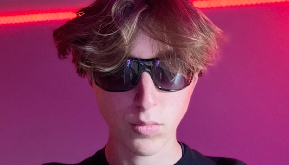 The format of @sadtok101’s videos consist mostly of Boller wearing sunglasses and staring at the camera as text hovers above his head, with different-colored LED lights behind him.