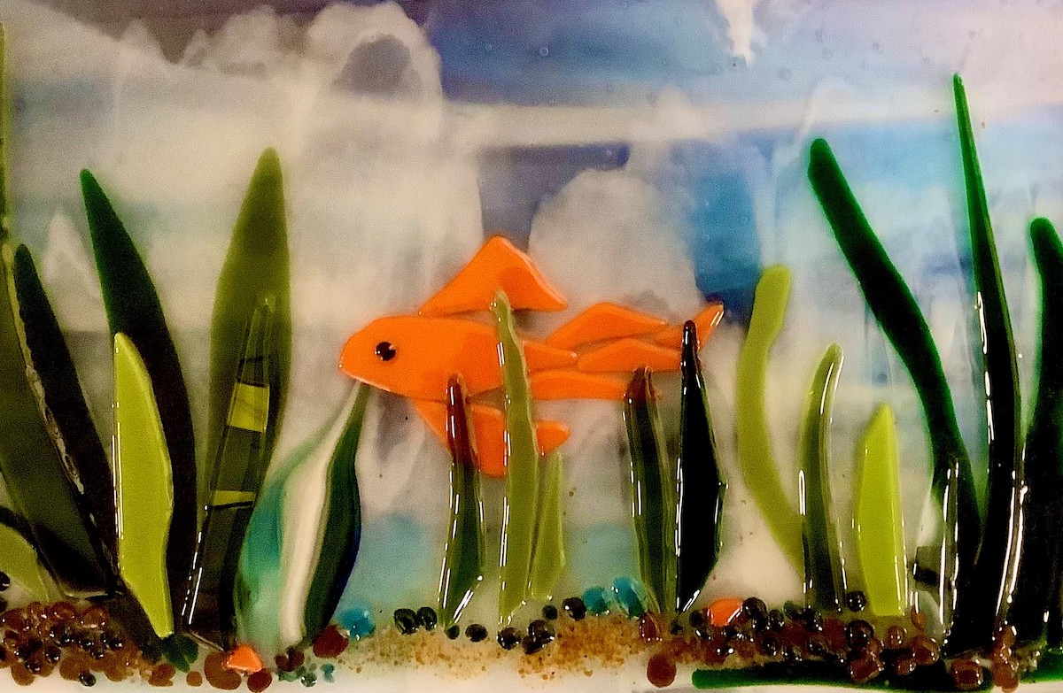 This year’s featured artist is Kristine Kelly. Her depiction of an underwater scene is reproduced on the festival poster. Kelly creates fused-glass artwork, often focusing on nature scenes, and was recently awarded first place in the National Glass Expo for a depiction of Yosemite.