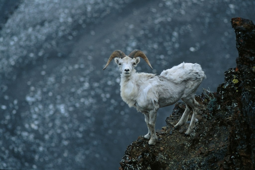 They could’ve been small patches of snow, remnants of winter clinging to slopes of the Brooks Range in the Arctic National Wildlife Refuge (ANWR) in northeast Alaska. Instead, it was a herd of 18 Dall sheep grazing a daunting mountain face smothered in peat and wildflowers. I watched them through my binoculars as they traversed into a lichen-covered limestone cathedral towering above the braided Kongakut River.