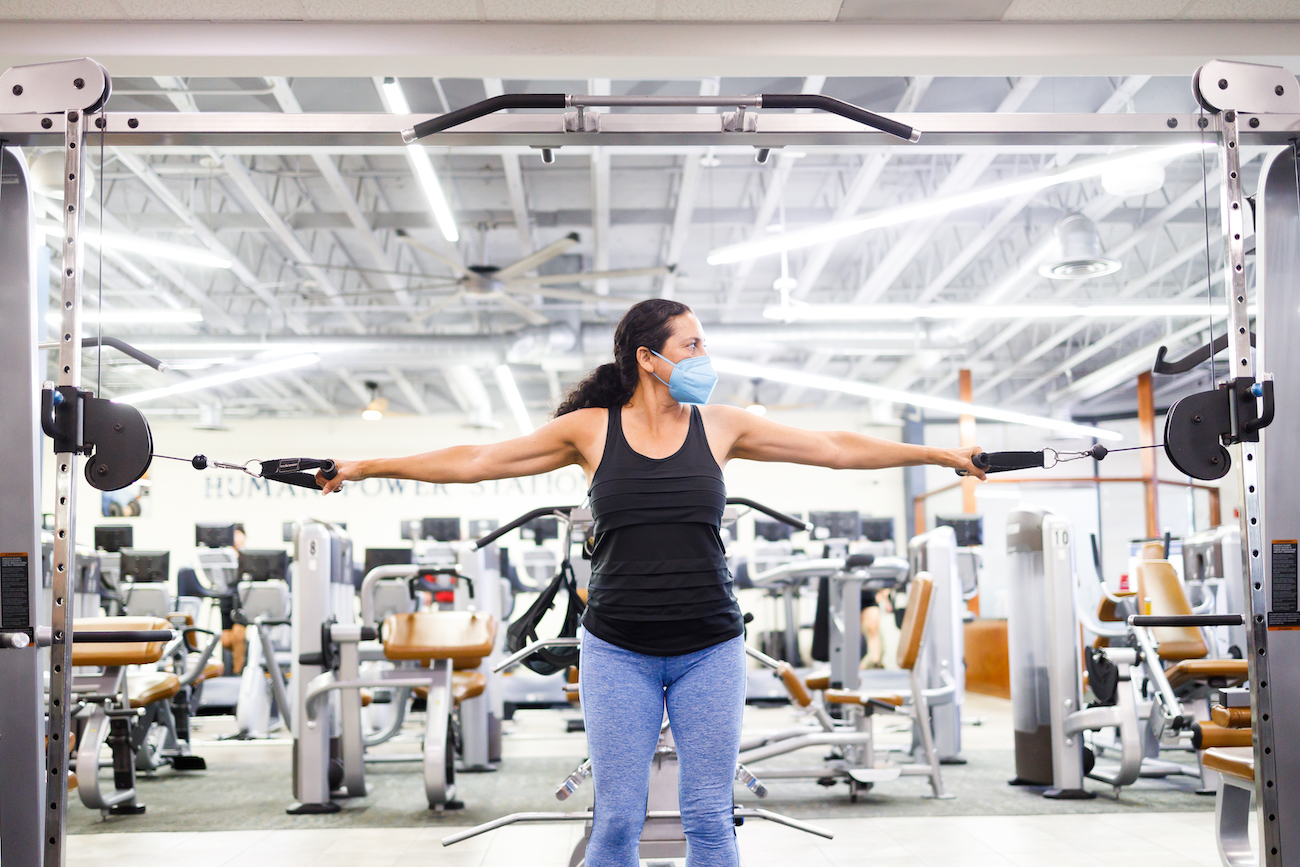 AC4 Fitness is noticeably quiet. There’s music playing on the sound system (Pink Floyd, REM, Jane’s Addiction, Weezer, Marvin Gaye), but a lot of people have their ear buds in, and nobody’s grunting or dropping weights, even when they’re working out hard. The TV is tuned to a sporting event — collegiate women’s softball, Grand Slam tennis, World Chase Tag — but the sound is off.