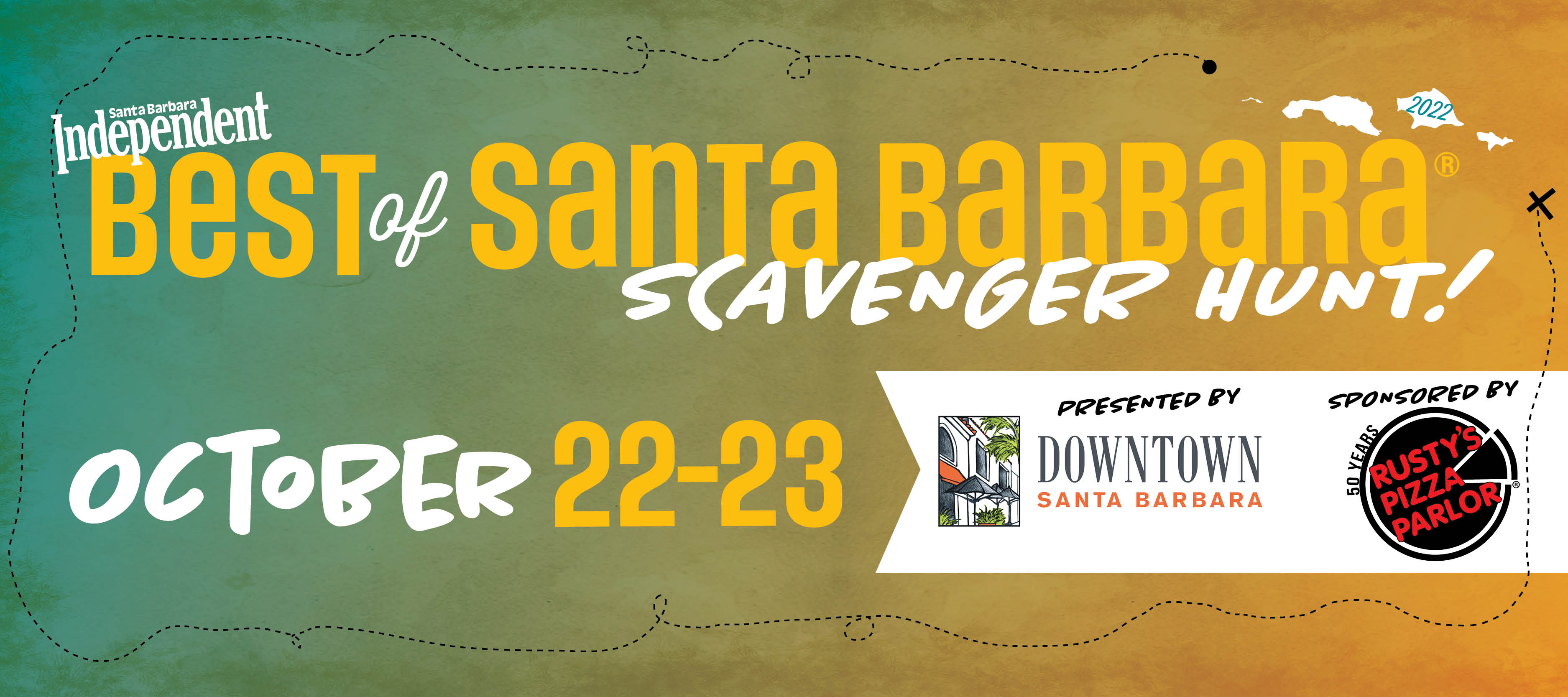 The Best of Santa Barbara® Scavenger Hunt – presented by Downtown Santa Barbara – will take place from Saturday, October 22 at 9 a.m. – Sunday, October 23 at 8 p.m. We invite you to put your Santa Barbara knowledge to the test. You’ll have 35 hours to solve as many of the 35 clues as you can. And if the thrill of solving clues isn’t enough of an incentive to join in on the fun, the winning team will win a $1,000 cash prize. The second place team will win a pizza party worth up to $135 at Rusty’s Pizza.
