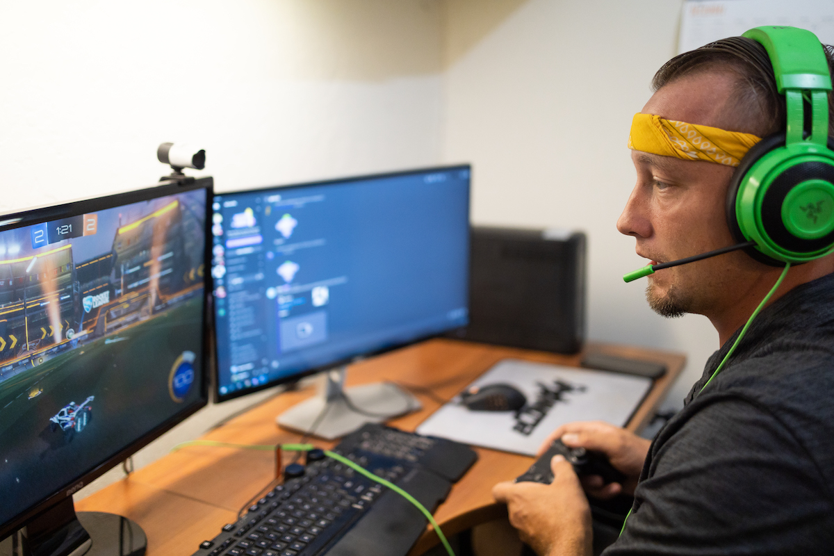 He lives locally with his wife Whitney and two daughters, and has been playing video games since adolescence. He appreciated it as a necessary and positive outlet for him as a “troubled 16-year-old,” and he eventually joined an eSports team and became a top player in online tournaments.