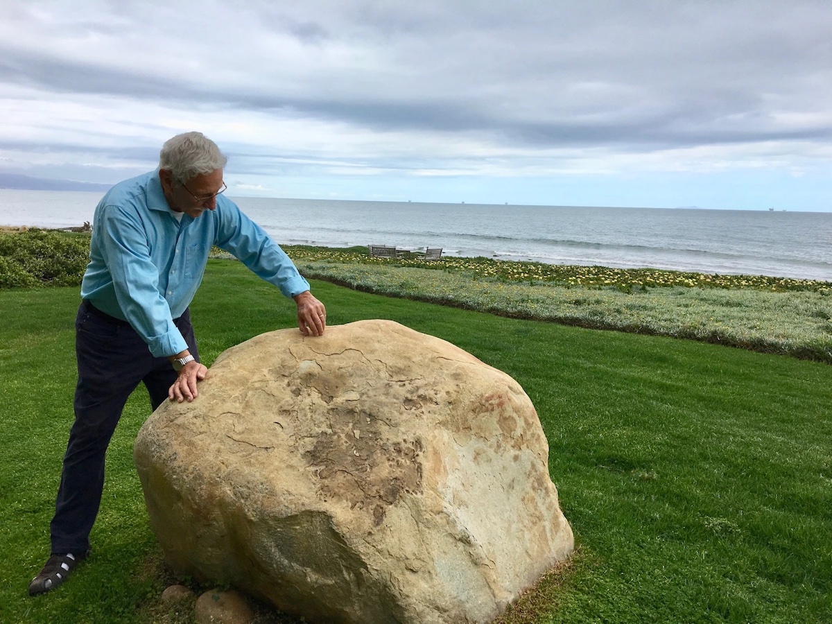 Ed scrutinized boulders at the Botanic Garden; Stevens, Rocky Nook, Oak, and Orpet parks; the county courthouse; Westmont College; in stone walls along Garden and Laguna streets, and down in the canyon behind his home on Las Canoas Road. He found boulders on the Riviera from a flow 125,000 years old, before the Riviera ridge was uplifted by earthquakes. He was so excited, he said it was like hunting for giant Easter eggs.