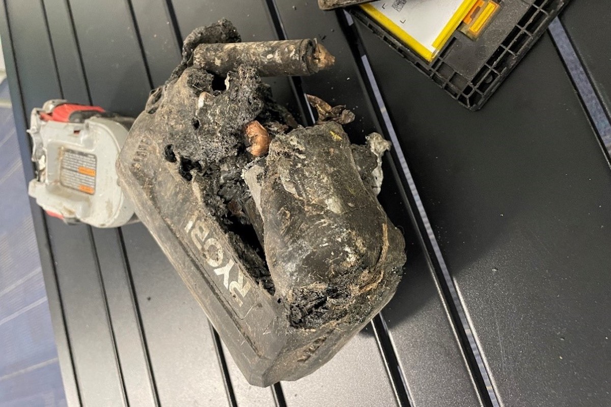Batteries can SPARK when tossed around in recycling trucks or waste bins or accidentally heated, crushed, punctured, or mishandled. Battery fires happen almost weekly at local solid waste facilities. These fires spread quickly because they are surrounded by flammable trash and recyclables. Battery fires damage equipment, put staff in danger, and could lead to a wildfire.