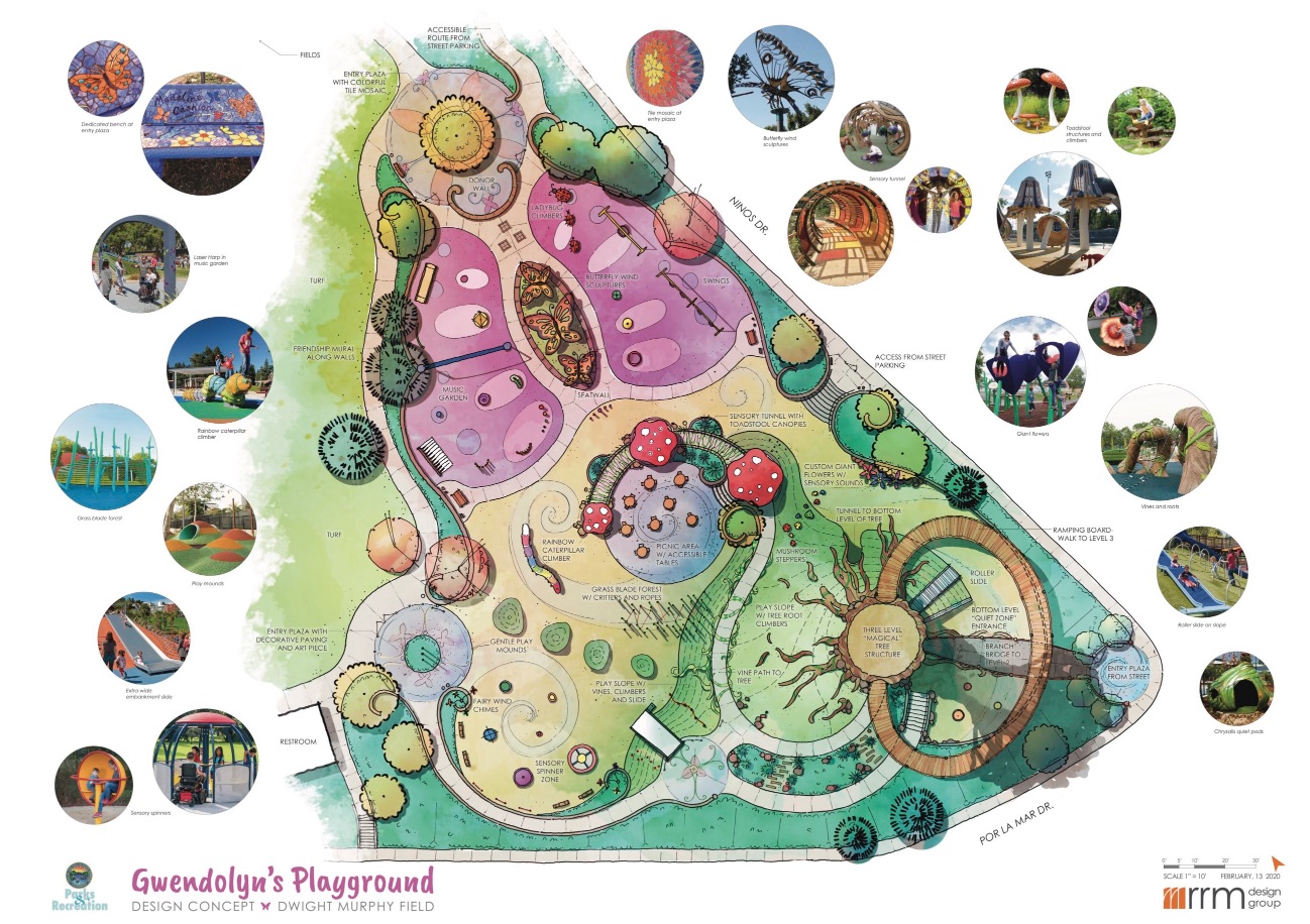 As they have always done, the Strongs boldly confronted this challenge, too: if Santa Barbara doesn’t have a playground where ALL of our children can play, then we will build one. And it will be big, and beautiful, with bright colors and butterflies … it is what Gwendolyn would have wanted.