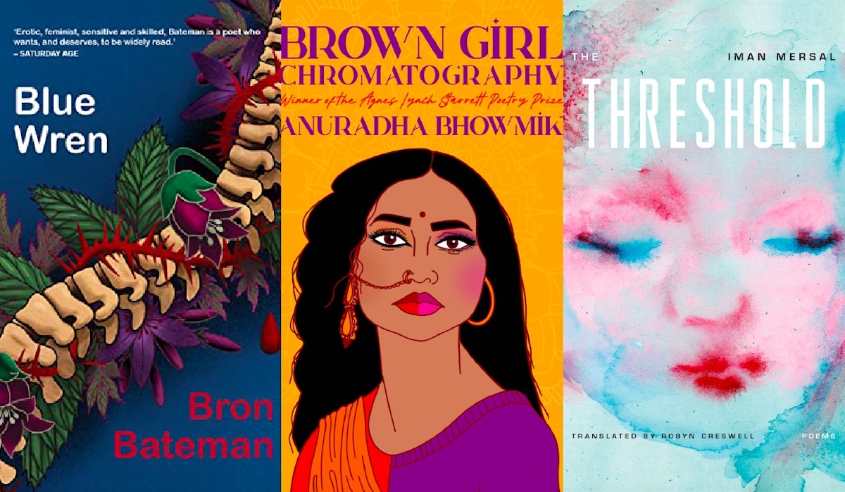 There’s a working-class wit and tenacity throughout Blue Wren (Fremantle Press), which is perfectly expressed in Bateman’s poem “Ambitions”: “My parents’ plans for me, / dizzying in their simplicity: / be the first in my family to attend university. / Be a teacher or a librarian. / Work hard, / pass, / get a job. / The soft bigotry of their low expectations — / surpassed.” The book’s triumph, though, is the sequence “Self-Portrait with Thorn Necklace and Hummingbird,” which shows us images of the poet from age 4 to 56, as she deals with molestation, depression, academic accomplishment, and the birth of many children (her biography says she is a “mother of nine”). Not only does Bateman’s unconventionality and honesty make every poem a surprise, but it’s also a treat for those of us in the northern hemisphere to hear the distinctive voice of a poet from Western Australia.