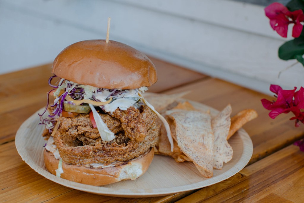 Her most innovative success in that regard is what she introduced as “our soon-to-be-world-famous crispy yuba sandwich.” Built around a pile of fried yuba — which are thin sheets of tofu skin — this doesn’t leave fried chicken fanatics like myself behind, delivering crispy bite after crispy bite without any moist flesh getting in the way. Braised out of its dehydrated origins, soaked in a vegan buttermilk, and then dredged in gluten-free flour, Tyger Tyger’s fried yuba is all about that crunch. Served on a vegan brioche bun with pickled Fresno chiles, chili-maple sauce, and yuzu ranch dressing, it satisfies on the required comfort-with-spice fronts, whether you’re a meat eater or not.