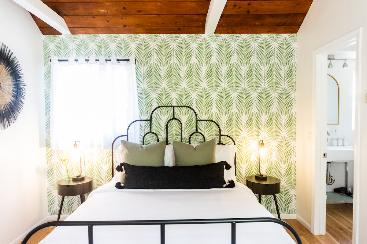 1) Add a pattern with peel-and-stick wallpaper or wall mural. Wallpaper has made a comeback, and there are countless beautiful patterns now available in peel-and-stick application. It’s fairly easy to apply (grab a friend to help) and a budget-friendly way to dramatically transform a room. Boldly patterned walls can create an upscale feel, and most projects can be completed in a weekend. Try this wall treatment in a small space, such as a powder room or an accent wall in the bedroom, to add major style while keeping costs low.