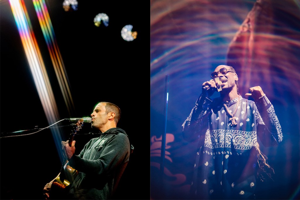 The two performances with the largest crowds were the top names on the poster lineups, Jack Johnson and Snoop Dogg. The latter gave a show-stopping performance, starting with a video of him walking down a hallway, then coming onto the stage in the same comfortable getup as the onstage video. Pole dancers surrounded him, as per usual for Snoop, doing insanely difficult moves like dancing on each other’s legs, upside down, in heels. He played a dozen hit songs, highlighting how truly impressive his career has been thus far. The crowd sang along to each word of “Boyz N the Hood,” “Doggystyle,” “Young, Wild & Free,” and “Drop It Like It’s Hot.”