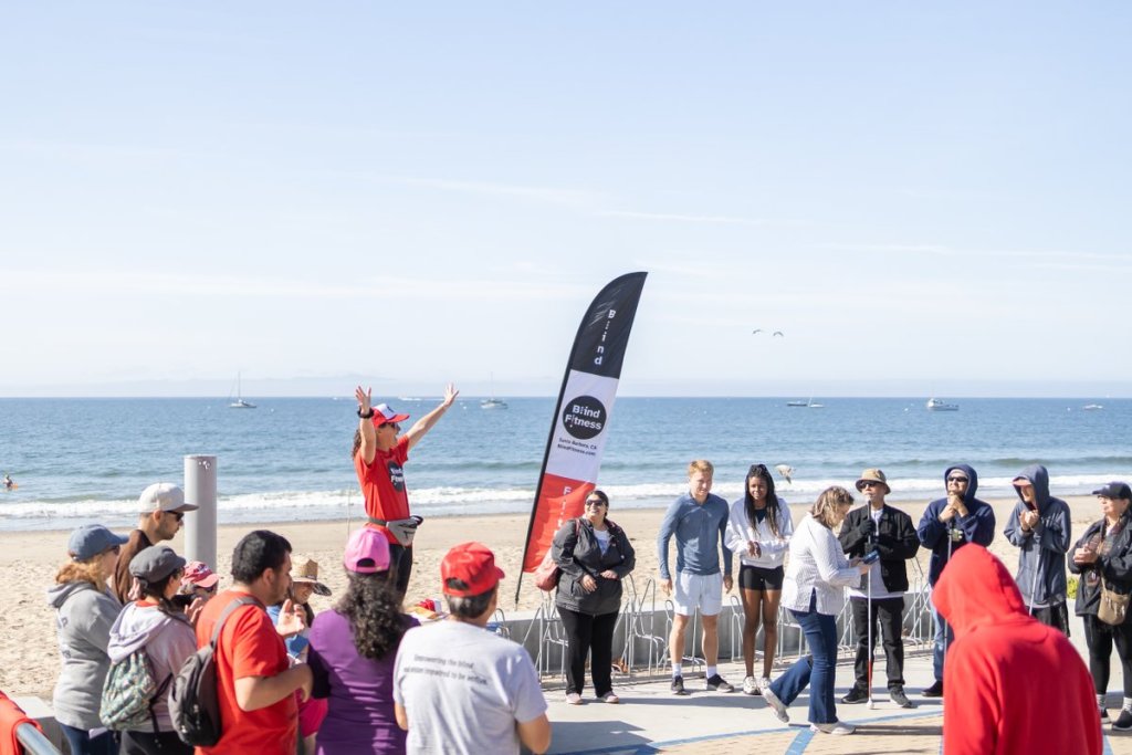 Blind Fitness board member Tania Isaac led us in pairs warmup stretches, which were a great icebreaker as athletes and guides laughingly figured out how to stretch together and keep our balance. Then Colunga and I set off along Cabrillo Boulevard toward Stearns Wharf. As Colunga told me about the dizzying array of activities he is involved in — singing, gaming, art, volunteering at the Braille Institute — I navigated us around slower walkers and described what I was seeing: people working out on the fitness equipment at the edges of Cabrillo Ball Park, Army Corps of Engineers equipment busily scooping up sand. Colunga, who has been blind since birth, didn’t mind my mentioning colors when I described our surroundings. Did it bother me, he asked, to know he is on the autism spectrum? No.